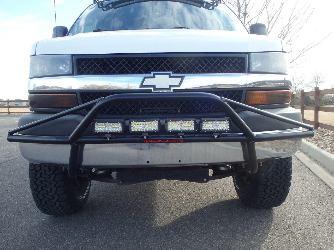 Mounts to front of van and extrudes under front bumper